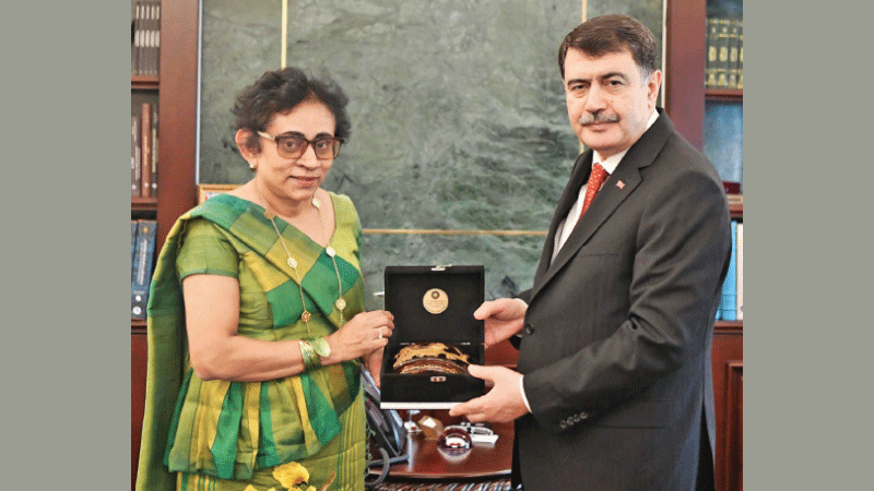Sri Lanka's Ambassador to Türkiye S. Hasanthi Urugodawatte Dissanayake paid a courtesy call on Governor of Ankara, Vasip Sahin recently and had a fruitful discussion on strengthening bilateral relations between Türkiye and Sri Lanka.