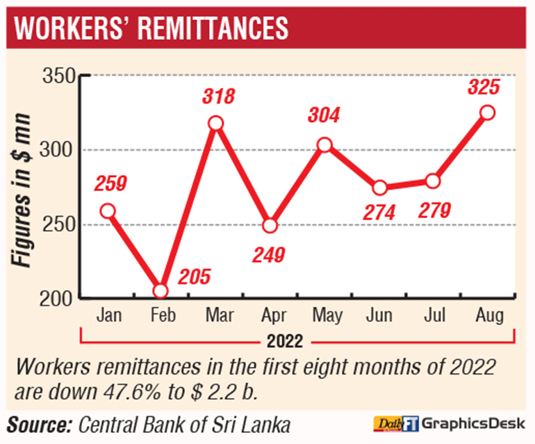 Workers’ remittances saw a rebound in August reaching $ 325 million, the highest level so far in 2022.