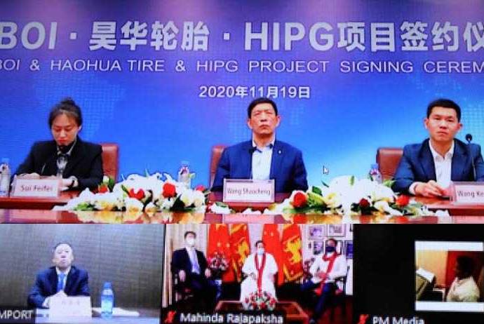 The Board of Investment of Sri Lanka yesterday signed an agreement with world-leading Chinese tyre manufacturer, Shandong Haohua Tire Co. Ltd., to set up a project to manufacture tyres for the export market.