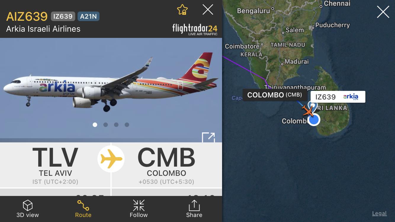 ඊශ්රායලයේ, ආර්කියා ගුවන්සේවය නැවතත් ශ්රී ලංකාවට ගුවන් ගමන් අද ආරම්භ කළ බව වාර්තා වෙයි.