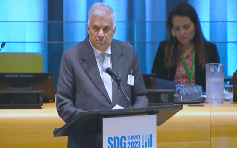 තිරසර සංවර්ධන ඉලක්ක සාක්ෂාත් කර ගැනීමේ ගෝලීය ප්රගතිය පිළිබඳ සෑහීමකට පත්විය නොහැකි අතර ඊට අදාළව පෙන්නුම් කරන්නේ 12%ක ප්රගතියක් පමණක් බවත් අනෙකුත් තීරණාත්මක ඉලක්කවලින් 30%ක් තවමත් සපුරාගෙන නොමැති බවත් ජනාධිපති රනිල් වික්රමසිංහ මහතා පෙන්වා දුන්නේය.