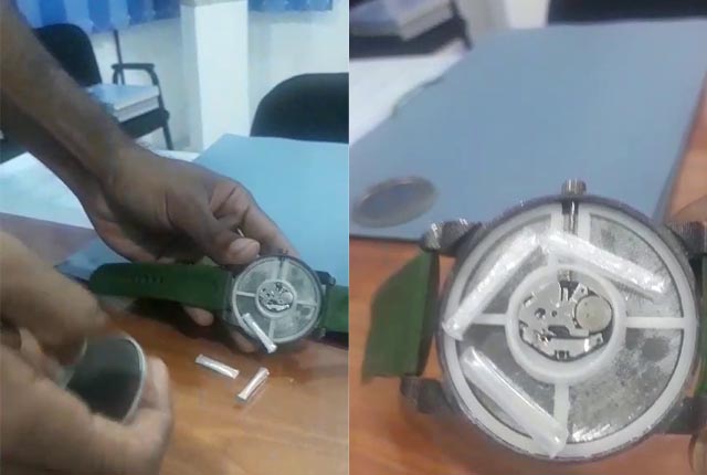 බැඳ සිටින අත් ඔරලෝසුව තුළ මත්කුඩු පැකට් සඟවා රැගෙන ගිය පුද්ගලයෙක් අත්අංගුවට ගත් බව මොරගහහේන පොලීසිය කියයි.