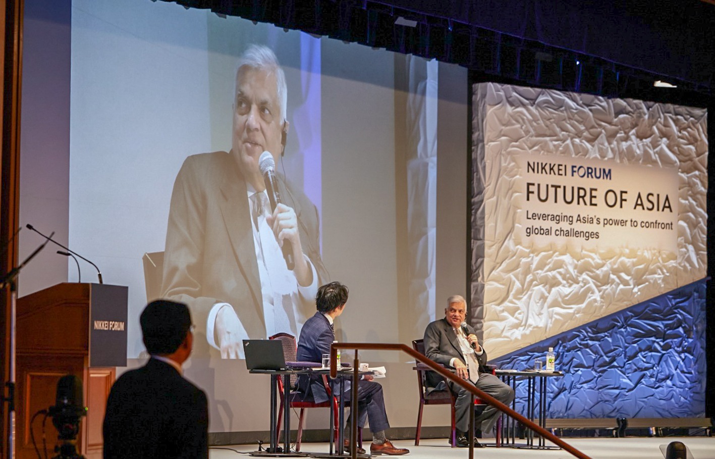 President Ranil Wickremesinghe took the stage at the ‘Nikkei Forum: Future of Asia’ held in Tokyo, Japan yesterday (25). During his address, the President emphasized the Government’s approach to the Indian Ocean and Asia-Pacific regions.