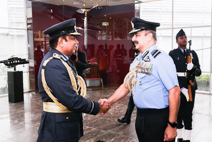 ශ්රී ලංකා ගුවන් හමුදාපති එයාර් මාර්ෂල් සුදර්ශන පතිරණ මහතාගේ ආරාධනයකට අනුව ඉන්දියානු ගුවන් හමුදා ප්රධානී එයාර් චීෆ් මාර්ෂල් විවේක් රාම් චෞද්රි මහතා ඇතුළු දූත පිරිසක් ඊයේ ( 01) කටුනායක බණ්ඩාරනායක ගුවන් තොටුපලෙන් නිල සංචාරයක් සඳහා දිවයිනට පැමිණියහ.