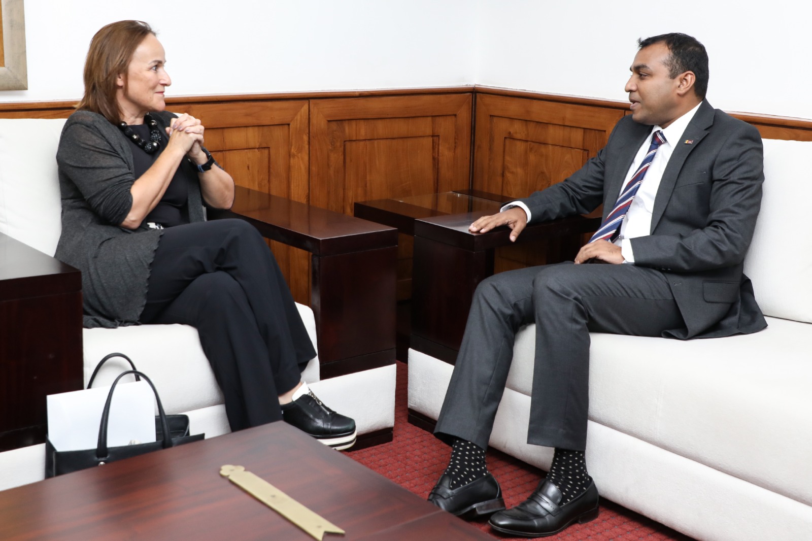 ශ්රී ලංකාවේ නෙදර්ලන්ත තානාපතනිය වන බොනී හොබැච් (Bonnie Horbach) මැතිනිය ඊයේ ( 07) කොළඹ පිහිටි ආරක්ෂක රාජ්ය අමාත්යාංශ කාර්යාලයේදී ආරක්ෂක රාජ්ය අමාත්ය ප්රමිත බණ්ඩාර තෙන්නකෝන් මහතා හමුවිය.