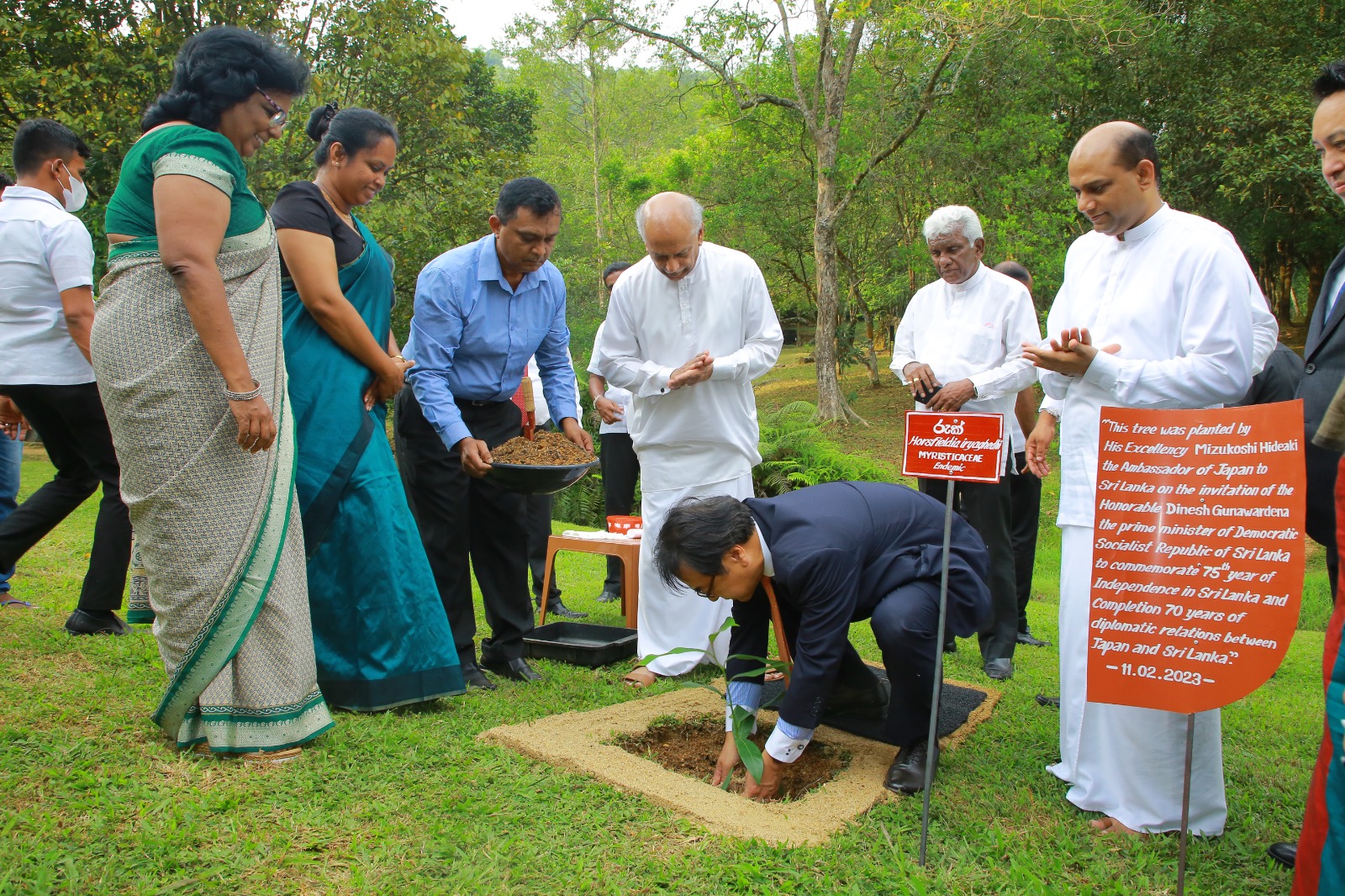 ශ්රී ලංකාවේ 75 වැනි නිදහස් සංවත්සරය සහ ජපාන ශ්රී ලංකා රාජ්යතාන්ත්රික සබඳතාවලට වසර 70 ක් සපිරීම නිමිතිකොටගෙන ජපාන තානාපති මිසුකොෂි හිදෙකි මහතා සීතාවක තෙත් කලාපීය උද්භිද උද්යානයේ පැළයක් රෝපණය කළේය.