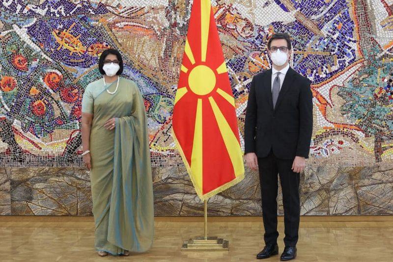 ශ්රී ලංකා තානාපති උණම්බුවේ මැතිණිය උතුරු මැසිඩෝනියා ජනරජයේ ජනාධිපති පෙන්ඩරොව්ස්කි මැතිතුමා වෙත අක්තපත්ර පිළිගන්වයි