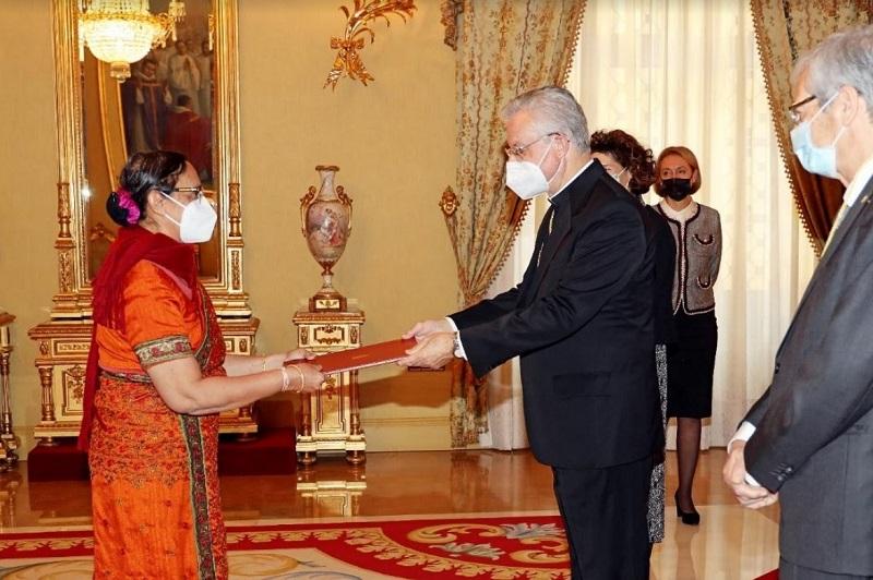 තානාපති මහාචාර්ය ශානිකා හිරිඹුරේගම මැතිණිය ඇන්ඩෝරා හි සම-කුමරු වන ජෝන්-එන්රික් විවෙස් Ι සිසිලියා මැතිතුමා වෙත සිය අක්තපත්ර පිළිගන්වයි