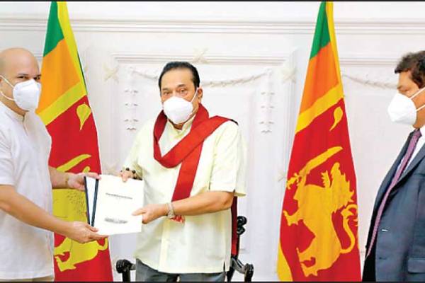 Sri Lanka’s High Commissioner to India Milinda Moragoda yesterday Prime Minister Mahinda Rajapaksa at the Temple Trees and handed over the Sinhala and English copies of the ‘Integrated Country Strategy for the Sri Lanka Diplomatic Missions in India 2021/2023’ to the Prime Minister. Secretary to the Prime Minister Gamini Senarath also accompanied the event