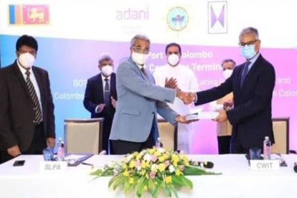 කොළඹ වරායේ බටහිර පර්යන්තය ඉදිකිරීම සඳහා වන ශ්රී ලංකා වරාය අධිකාරිය සහ කොළඹ බටහිර ජාත්යන්තර පර්යන්තය (CWIT) ආයෝජන පාර්ශවකාර ඉන්දියාවේ අදානී සමාගම හා ශ්රී ලංකා නියෝජිත ජෝන්කීල්ස් සමාගම අතර ගිවිසුම (30) කොළඹ දී අත්සන් තැබිණි.