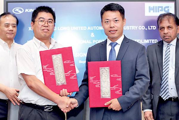 The Hambantota Inter-national Port Group (HIPG) signed a Memorandum of Understanding (MoU) with Xiamen King Long United Automotive Industry Co., Ltd. (King Long) in Fujian, China, last week.