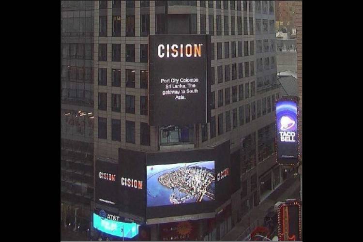 Following the approval of the Colombo Port City Commission Bill by Parliament, China Harbour Engineering Company (CHEC) has kicked off a global blitz of the venture. It took to the famous Times Square in New York City to advertise the project over the weekend and spread the message “Port City Colombo, Sri Lanka. The gateway to South Asia.”