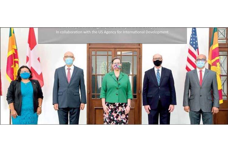 From left: Swiss Agency for Development and Cooperation National Program Manager Madushika Lansakara, Swiss Ambassador to Sri Lanka and Maldives Dr. Dominik Furgler, US Ambassador to Sri Lanka and Maldives Alaina Teplitz, US Agency for International Development Sri Lanka and Maldives Mission Director Reed Aeschliman and Migration Skills and Guidance YouLead Director Nirosha Hapuarachchi