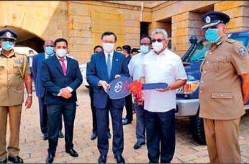 Japanese Ambassador Sugiyama Akira on Tuesday presented anti-terrorism surveillance and investigation vehicles to President Gotabaya Rajapaksa at the Presidential Secretariat Office.
