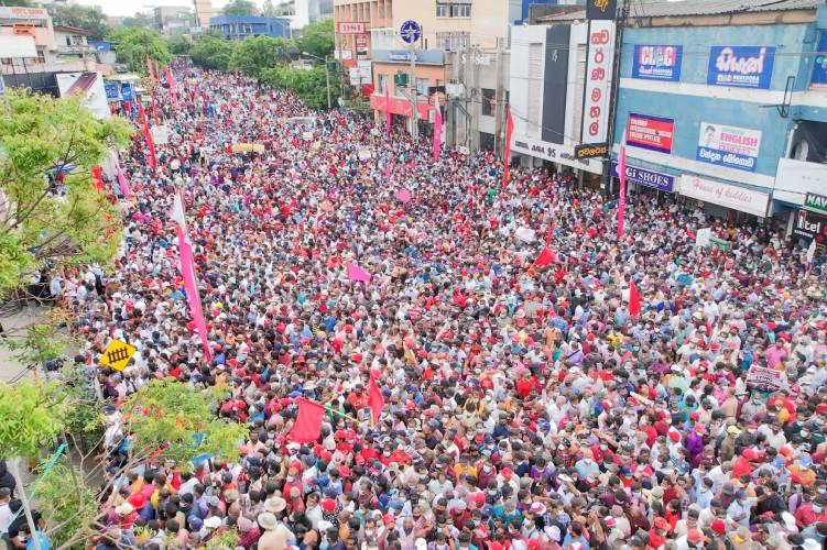 ජනතා විමුක්ති පෙරමුණ ප්රමුඛ ජාතික ජන බලවේගය විසින් අද (23) නුගේගොඩ නගරයේදී පවත්වන විරෝධතා රැලියට දැවැන්ත සෙනඟක් සහභාගී වී තිබේ.
