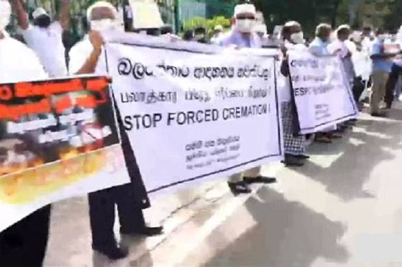 The Samagi Jana Balawegaya (SJB) today (23) held a silent protest demonstration in front of the Borella Cemetery, calling to allow burials of those who have succumbed to Covid-19.