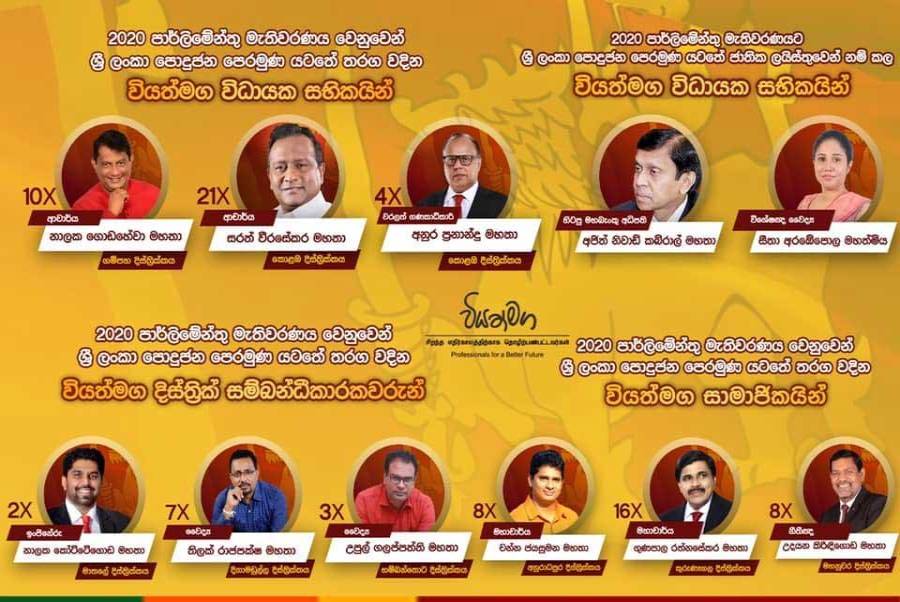ජනාධිපති ගෝඨාභය රාජපක්ෂ මහතාගේ දේශපාලන ව්යාපෘතිය වෙනුවෙන් බිහිකෙරුණු වියත්මග සංවිධානය විසින් මෙවර මහමැතිවරණය සඳහා ඉදිරිපත් කර ඇති අපේක්ෂකයින් නිල වශයෙන් නම්කර තිබේ.