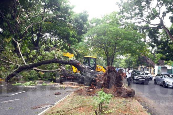A tree had fallen across the street at Green Path in Colombo 7 (Dr Ananda Coomaraswamy Mawatha) this morning causing minor traffic snarls.