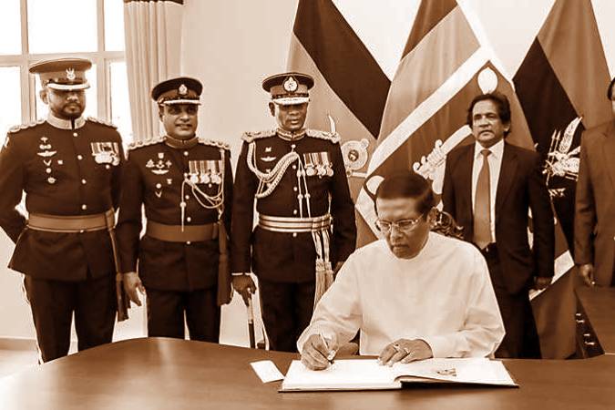 In keeping with traditional customs, Diyawadana Nilame (Custodian) of the Sacred Sri Dalada Maligawa Nilanga Dela Bandara, along with the Basnayake Nilames of the four Devalas, presented the traditional communication of the successful conclusion of the Kandy Esala Perahera (Sannasa) to the Head of State, President Maithripala Sirisena at President’s House in Kandy yesterday.