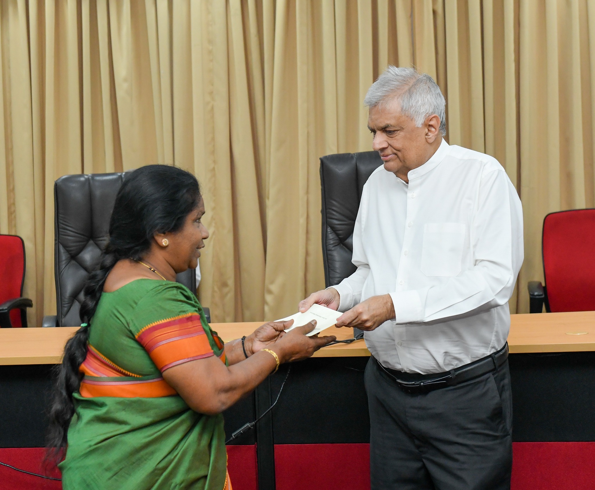 උතුරේ නැවත පදිංචි කෙරෙන පවුල් 197ක් සඳහා ඉඩම් ඔප්පු ප්රදානය සහ රුපියල් 38,000 බැගින් වූ චෙක්පත් ප්රදානය ජනාධිපති රනිල් වික්රමසිංහ මහතාගේ ප්රධානත්වයෙන් යාපනය දිස්ත්රික් ලේකම් කාර්යාලයේ දී අද (11) සිදු කෙරිණි.