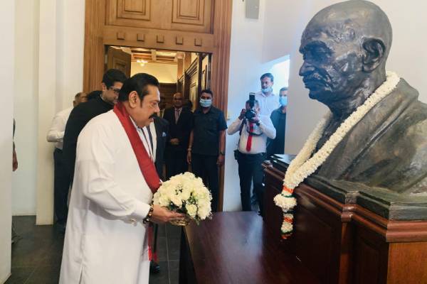 On the occasion of the birth anniversary of Mahatma Gandhi on 2 October, Prime Minister Mahinda Rajapaksa offered floral tribute to Gandhiji in a ceremony held at Temple Trees. Deputy High Commissioner of India Mr. Vinod K Jacob represented the High Commissioner, along with other Indian diplomats.