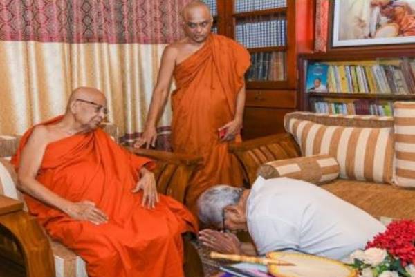 President Gotabaya Rajapaksa visited Dharmapalarama Vihara in Mount Lavinia and called on the Chief Incumbent of the temple Uththarithara Mahanayake of the Sri Lanka Amarapura Maha Nikaya Aggamaha Panditha Mahopadhyaya Most Ven. Kotugoda Dhammawasa Thera.