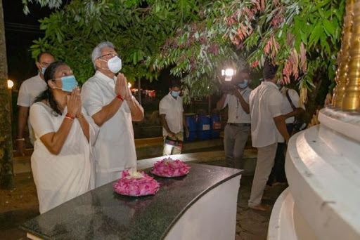 President Gotabaya Rajapaksa visited ancient Mihindu Aranya Senasana in Anuradhapura and received blessings yestarday (July 04).