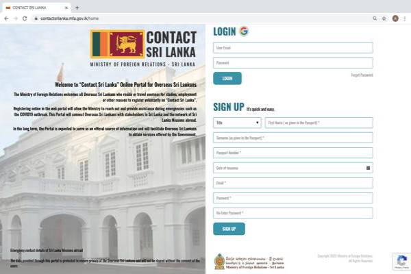 ‘Contact Sri Lanka’ an online portal for the benefit of Overseas Sri Lankans was launched yesterday (26) at the Ministry of Foreign Relations. The web link is hosted on the Ministry web page www.mfa.gov.lk and also can be accessed at www.contactsrilanka.mfa.gov.lk.