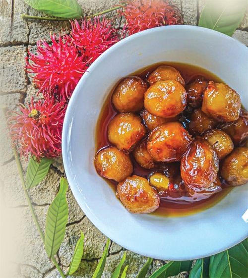 බැලූ බැල්මට රට ඉඳි වගේ නේද පේන්නේ. ඒත් ඒවගේ පෙනුමක් තිබුණාට මේ තමයි රඹුටන් දෝසි. ඇඹරැල්ලා දෝසි හදන විදිහටමයි හදලා තියෙන්නේ. හරිම රසයි. ඒ වගේම මෙහි විශේෂත්වය වන්නේ රඹුටන් මදය ඇටත් සමඟම කෑමට ගන්න හැකි වීම. හරියට අපි පුංචි කාලේ කොට්ටම්බා ඇටවල මදය කෑවා වගේ කන්න පුළුවන්. කිරි රසයි. ඒ වගේම මෙය පිරිසුදු වියළි වීදුරු බෝතලයකට දමා අවුරුද්දක් පමණ කල් තබා ගන්නට හැකියි. තාම රඹුටන් වාරය නිසා ඔබත් සාදා බලන්න.
