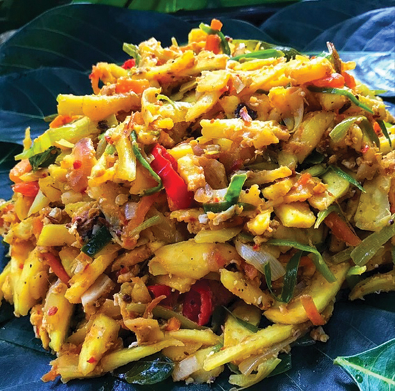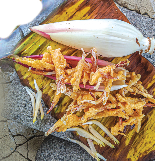 සිහින්ව කපාගත් අළු කෙසෙල් පොතු (කපාගත් සැණින්ම ලුණු මිශ්ර වතුරට දාන්න. නැත්නම් කහට පිපෙනවා)